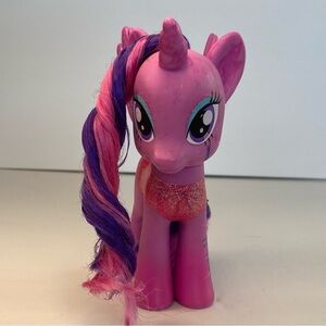 This MLP is in overall good condition for being from 2010. The hair and body have been washed. This mares hair was in pretty bad shape but after washing and styling it is much better but the ends are a little frayed. She does have a purple mark on her face that I tried to get off but wasn’t successful. Not in perfect shape but definitely in good condition. Measures approximately 6” tall and 4” wide.