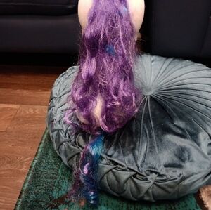 Adorable unicorn toy with a white body and a vibrant purple mane. Perfect for kids and collectors.