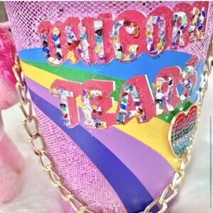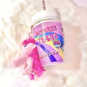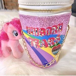 Unicorn Tears 😭 Embellished Crossbody Purse. Long gold chain strap. Brand new; never used. No flaws. Customized with all kinds of bling and jewel encrusted straw. OOAK Item. Super cute. My little pony keychain Included.