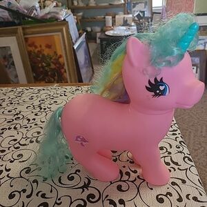 Pre-owned in good condition. Comes with the mushroom and rainbow pony and a storybook.