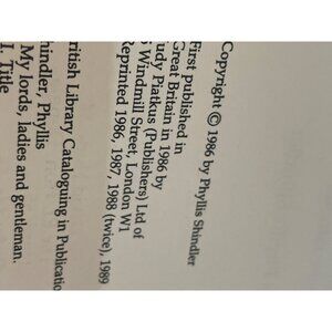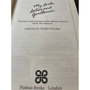 My Lords Ladies And Gentlemen By Phyllis Shindler 1986 Piatkus Books After-Dinne