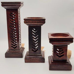 My Mela Mela Artisans Set of 3 Pillar Candle Holder Dark Wood Handmade Column
