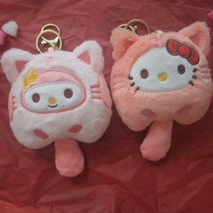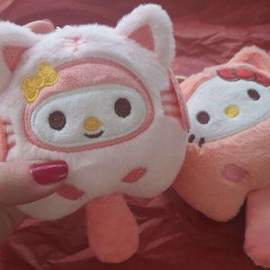 My Melody & Hello Kitty Plushie Keychain NWOT (Free Hello Kitty Case As Pictured)