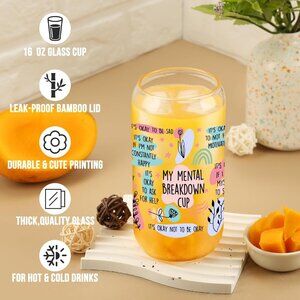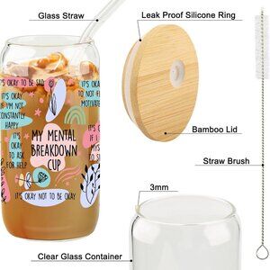 Perfect Mental Health Gift for Her - Designed to provide a moment of solace and gentle reminder, this glass is adorned with positive affirmations and inspirational quotes, make a great gift for friends and family. It is the perfect companion for those moments when the weight of the world feels overwhelming. 16 oz clear tumbler coming with glass straw and bamboo lid, perfect for Iced or hot coffee, beer, soda, milk, juice, etc.