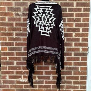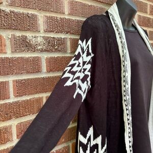 My Michelle Aztec Design Fringe Open Front Lightweight Cardigan Sweater Sz XL