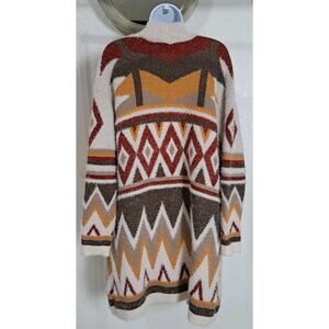 My Michelle Aztec Open Front Cardigan Womens Sz L Fuzzy Southwestern Western