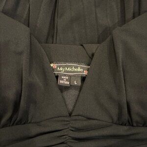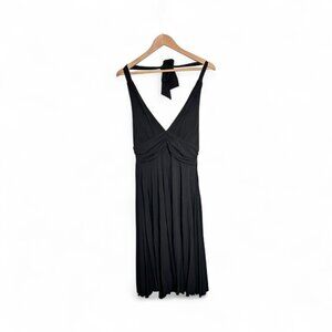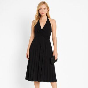 My Michelle Black Pleated Halter Midi Dress Size Large Elegant Classic LBD