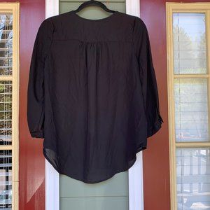 This black blouse from My Michelle has two zipper pockets on the front, and long sleeves with the ability to tie up around elbow length.