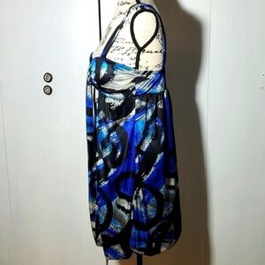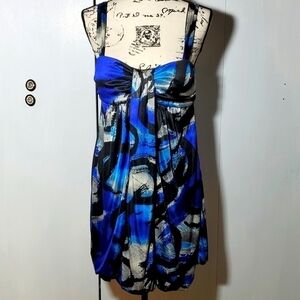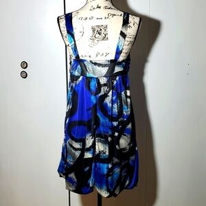 My Michelle- Blue Geo vintage Gathered balloon hem Artsy 90'S Mini Dress Sz.L