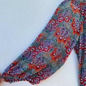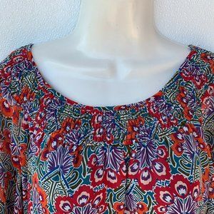 My Michelle Dress Size Medium Round Neck 3/4 Sleeve Sheer Lined Floral Purple Green