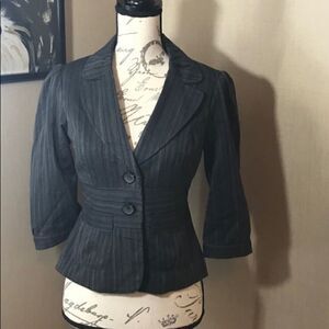 My Michelle blazer in gray, size medium. The material is 60% , 37% rayon, and 3% spandex.