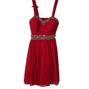 My Michelle Red Beaded Empire Waist Cocktail Dress Size 7