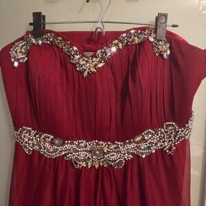 My Michelle Red Jeweled Strapless Gown Plus Size 22 + Formal Evening Dress