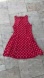Charming red midi dress with white polka dots. Sleeveless design. Perfect for casual outings.