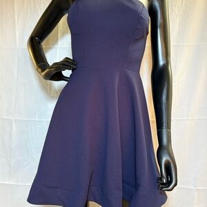 Chic strapless dress with lace bodice. Zipper detail adds flair. Ideal for special events.