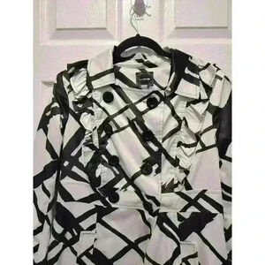 My Michelle black and white ruffled pea coat jacket size LARGE Square button Y2K