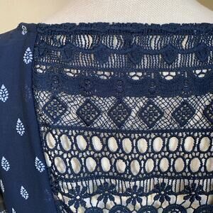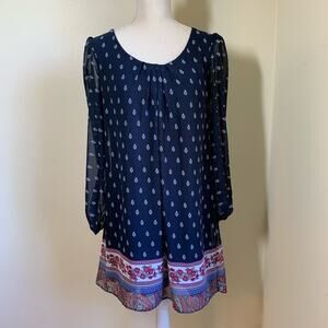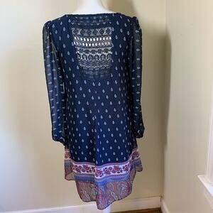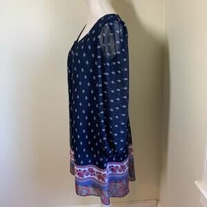 My Michelle navy dress with accent border on hem women’s size M 🍀