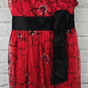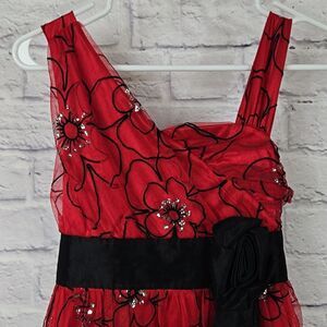 My Michelle Girls Formal Red Floral Flocked Bubble Dress Holiday Christmas Party