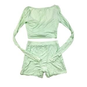My Mum Made It - Scoop Neck Long Sleeve Baby Crop Top & Matching Shorts in Mint Green