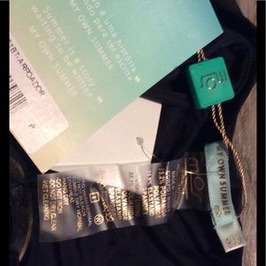 My own summer brand bikini. New with tags. Ruffle edge bikini bottom.. Ties on side. Gorgeous ties embellished with oxen horn charms. Ruched behind. Ultimate bohemian bikini. Size small.