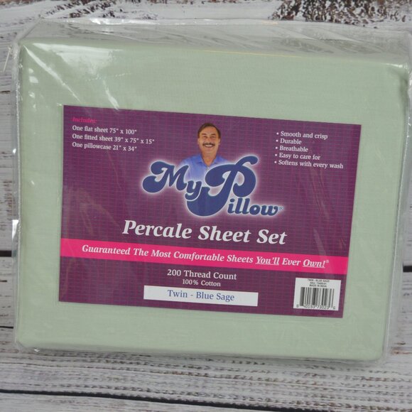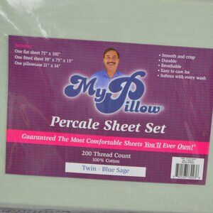 My Pillow Mypillow Percale 100% Cotton Sheet Set 200 Thread Twin Blue Sage NEW