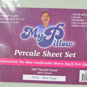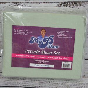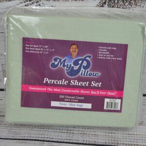 My Pillow Percale 100% Cotton Sheet Set 200 Thread Count Twin Size Blue Sage NEW