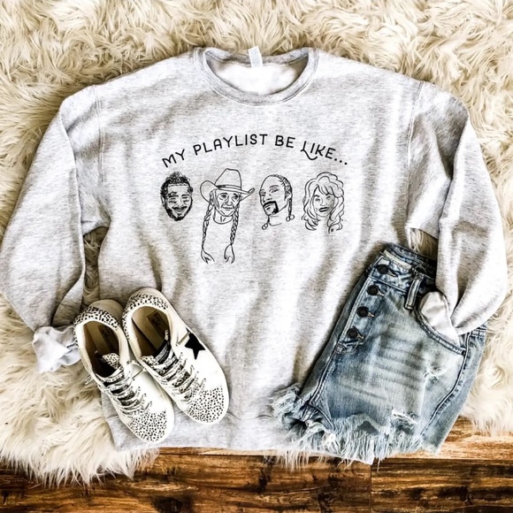 This is what my playlist looks like for sure! Gray crewneck, super comfy.