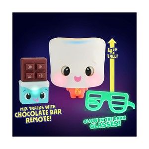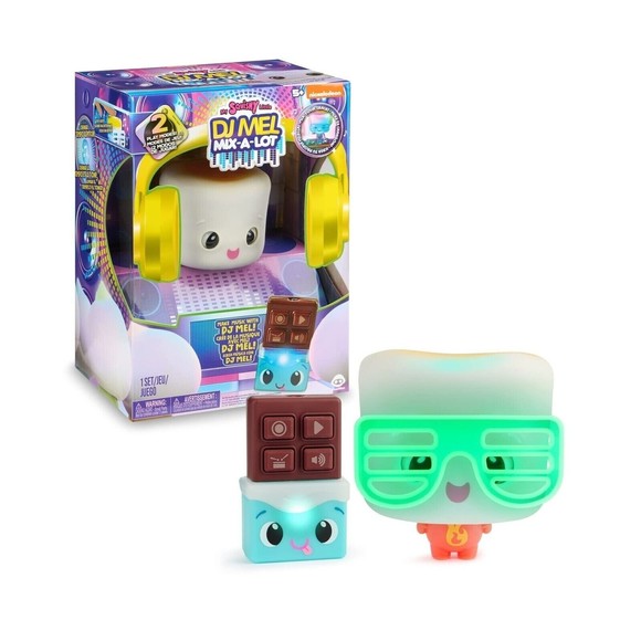 MAKE MUSIC WITH DJ MEL! Tap a beat on Mel's head and record a vocal track, then watch as he plays the mix track back for you. Touch sensors on Mels head make creating custom beats easy. Edit your tracks with the chocolate bar remote to choose from different sound effects! RECORD YOUR VOICE! DJ Mel Mix-A-Lot doubles as a microphone! Speak into Mels head to record your voice, then change it up with silly voice filters that adjust your playback speed. GLOW IN THE DARK GLASSES! Complete Mels DJ look with his glow in the dark shutter glasses, turn the lights off and watch them glow! 50+ REACTIONS! Squeeze DJ Mel Mix-A-Lots cheeks to bring his DJ personality to life. With 50+ reactions to discover, DJ Mel lights up as you play and makes unique sounds when you interact with him. INCLUDES: 1 DJ Mel Mix-A-Lot, 1 pair of glow in the dark glasses, and 1 chocolate bar remote. Fun for ages 5+. Product size: 3.5 W x 4 H x 3 D.