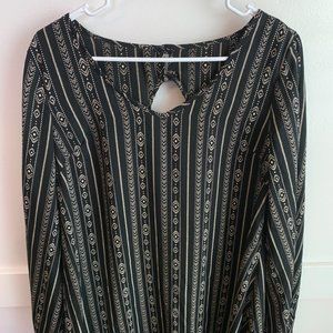 My Story Black & Cream Cold Shoulder Long Sleeve Blouse