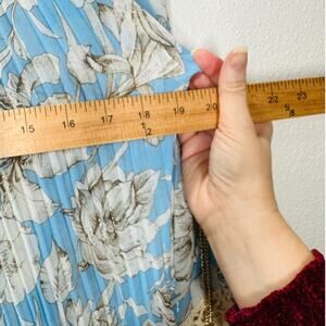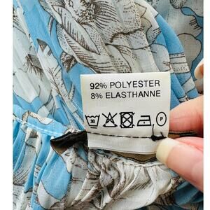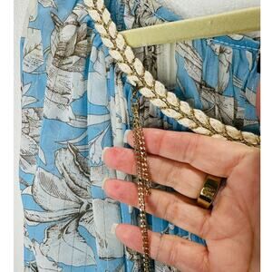 My Story Paris Cream & Blue Accordian Pleat 3/4 Sleeve Blouse S