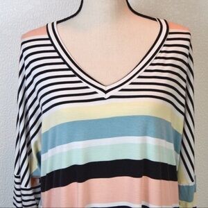 My Story Step Hem Dolman Sleeve Multi Color Striped Tunic Top, Large