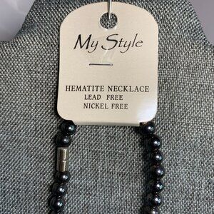 My Style Magnetic Hematite Necklace with Lock Charm. Lead/Nickel Free. New Never Used. 18" long. (152)
