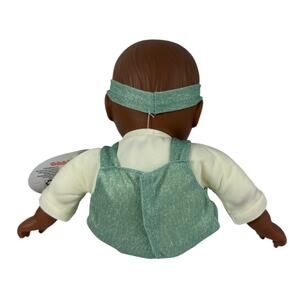 Features soft vinyl face, arms, and legs with a cuddly fabric body. Dressed in a mint green outfit with matching bow headband. Clean, unused, and ready for gifting.