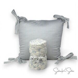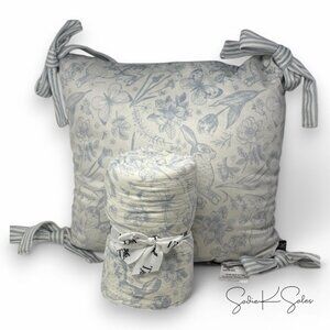 My Texas House Blue Bunny Toile Printed Dutch Velvet Easter Pillow 20" Spring