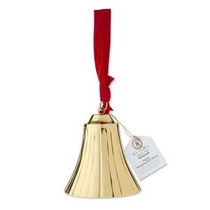 Metal Hanging Bell with Velvet Ribbon Christmas Decoration, Gold, 8.12"