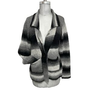 My Tribe Black & Gray Striped Long Sleeve Wool Blend Cardigan Size M