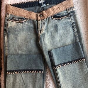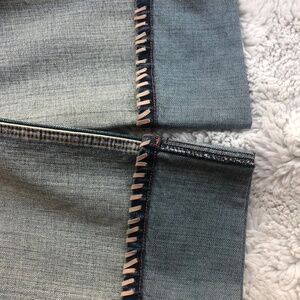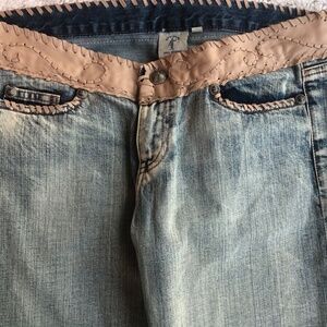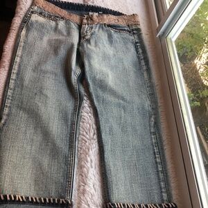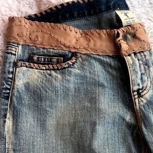 My Tribe Capris Jeans, Size 29, Leather waist, embellishments Whip Stitching on cuffs