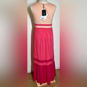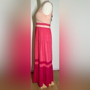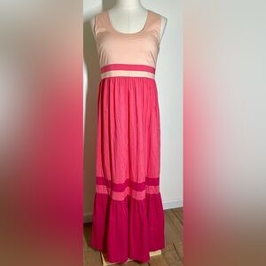 My Twin - Twinset, pink color block maxi dress in a cotton blend material. Women’s size L, would comfortably fit an 8/10. No stretch.