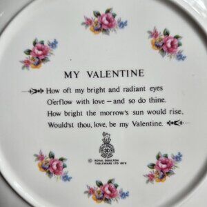 Royal Doulton Victorian Floral Courting Couple Plate "My Valentine" Embossed Bone China Plate Measures 8 1/2". My Valentine poem on back. A very special Valentine gift.