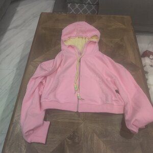 This soft, 100% cotton hoodie feature an oversized hood and cozy thumbholes, making it the perfect throw-on piece, whether you're hitting the pavement or hitting the hay. With its adorable beaded drawstring, soft heart-patterned mesh ruffles, and roomy pockets for all your essentials, this cropped hoodie has got you covered for any occasion!