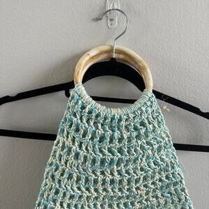 My beachy side Two Tones Hand Crochet Bag with Bone Handle