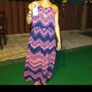 Selling this beautiful blue and pinksh pattern dress. Very long and comfy. I really do not need any more. I'd love for someone to wear it. instead of sitting in a closet.