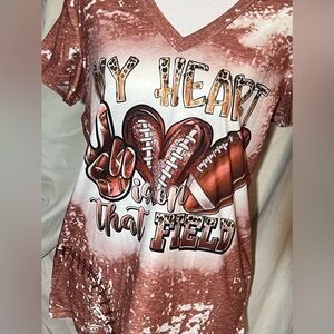 🏈My heart is on that field VNeck womens TShirt with heart, peace, and football