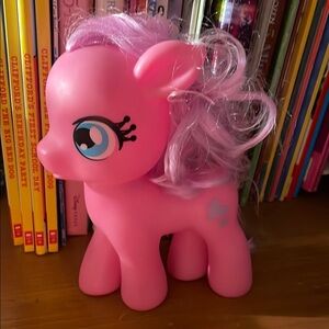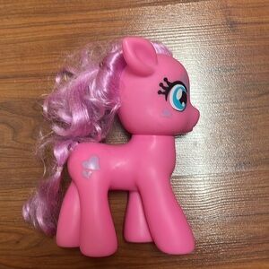 This charming pony doll showcases a bright pink body and a soft, wavy purple mane, perfect for imaginative play. Its large, expressive eyes add a touch of whimsy, making it a delightful addition to any toy collection. Crafted with attention to detail, this pony is sure to inspire endless storytelling adventures