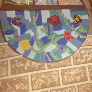 I made my senior prom dress. There's pictures of the front, back, and when you take off the longer skirt (yes it's detachable)!!! The bottom is a piece I finished today for the musical I'm student directing! It took 7 hours but it actually looks like a stained glass window!!
