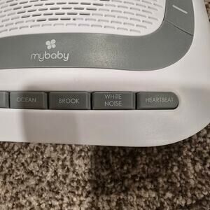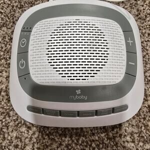 Excellent condition, MyBaby by Homedics. This sound machine has multiple sounds and a timer option. Can be plugged in or use batteries.