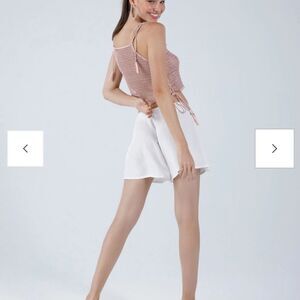 Show off your kicky summer style and tan legs with this cute skort. Featuring on-trend box pleat details in the front, these come in white. Rock with our Freesia halter top or our Monarch pajama shirt to stroll the streets in style.