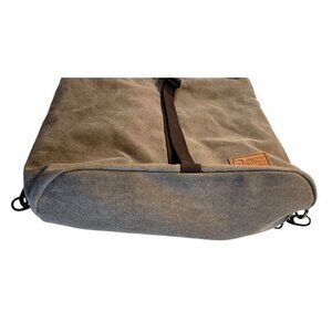 An interchangeable style bag by MyHozee in a khaki shade canvas. Straps are interchangeable to allow use as a backpack, shoulder bag, clutch, and more to fit multiple occasions. Canvas material is durable and light-weight. In great condition.
