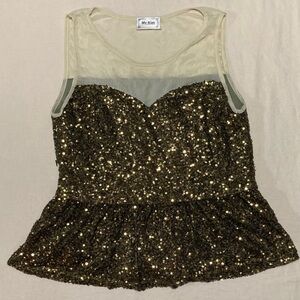 My-Kim Gold Sequin Sleeveless Top with Peplum