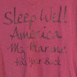 Show your Marine pride with this comfortable Next Level t-shirt! Features the bold statement: "Sleep Well, My Marine Has Your Back." Made from soft, high-quality fabric for all-day comfort. Perfect for Marine families, veterans, or anyone who supports our troops.